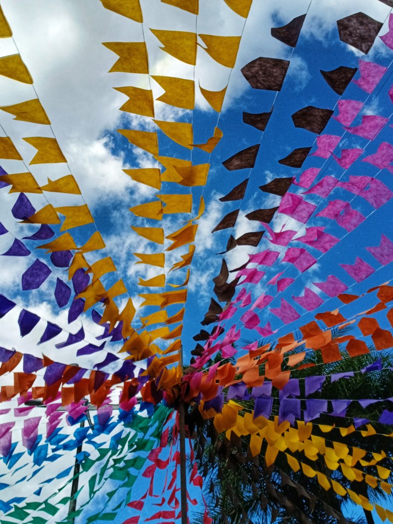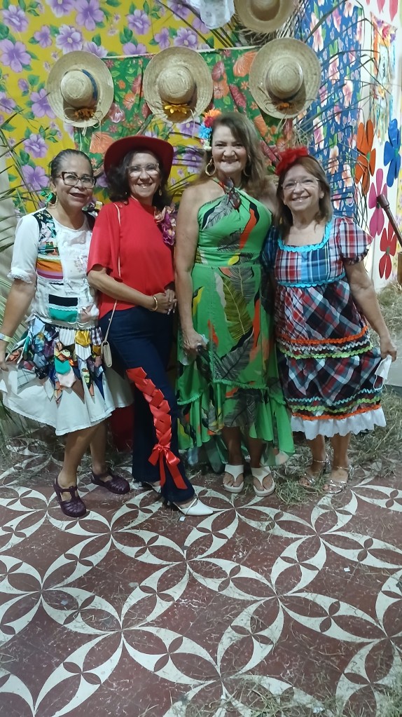 A jornada foi grande . Festinhas, visitas a barracas, comidas típicas, aluá, paçoca pisada no pilão, forrozinho, pé de moleque, bolo de milho, grude, baião de dois, tudo de bom, do jeito que o nordestino gosta. Gratidão a Deus e santos juninos pela oportunidade de viver esse tempo de festa.
